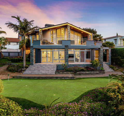 Features and Benefits: • North-facing, freehold 749sqm site (more or less) • 5 Bedrooms, 2 modern bathrooms (two powder rooms) including master ensuite • Multiple living areas • Superform 2.7m stud masonry base supporting mid-level concrete floors with Florad underfloor heating running through all floors • Curved architectural concrete pergola overlooking golf green • 100sqm (approx) of concrete patios/decks enhancing outdoor living • Latest electrical fittings, LED lighting and fibre internet connection throughout • Expansive urban and sea views of the Hauraki Gulf • Golf green plumbed for future pool complex, all North facing • Double garage with multiple off-street parking • Close proximity to Mairangi Bay shops, Campbells Bay & Mairangi Bay beaches, El Greco Restaurant, cafes, parks/reserves & amenities • School Zone: Campbells Bay Primary, Wairau & Murrays Bay Intermediate, Rangitoto College and Double Westlake High Schools